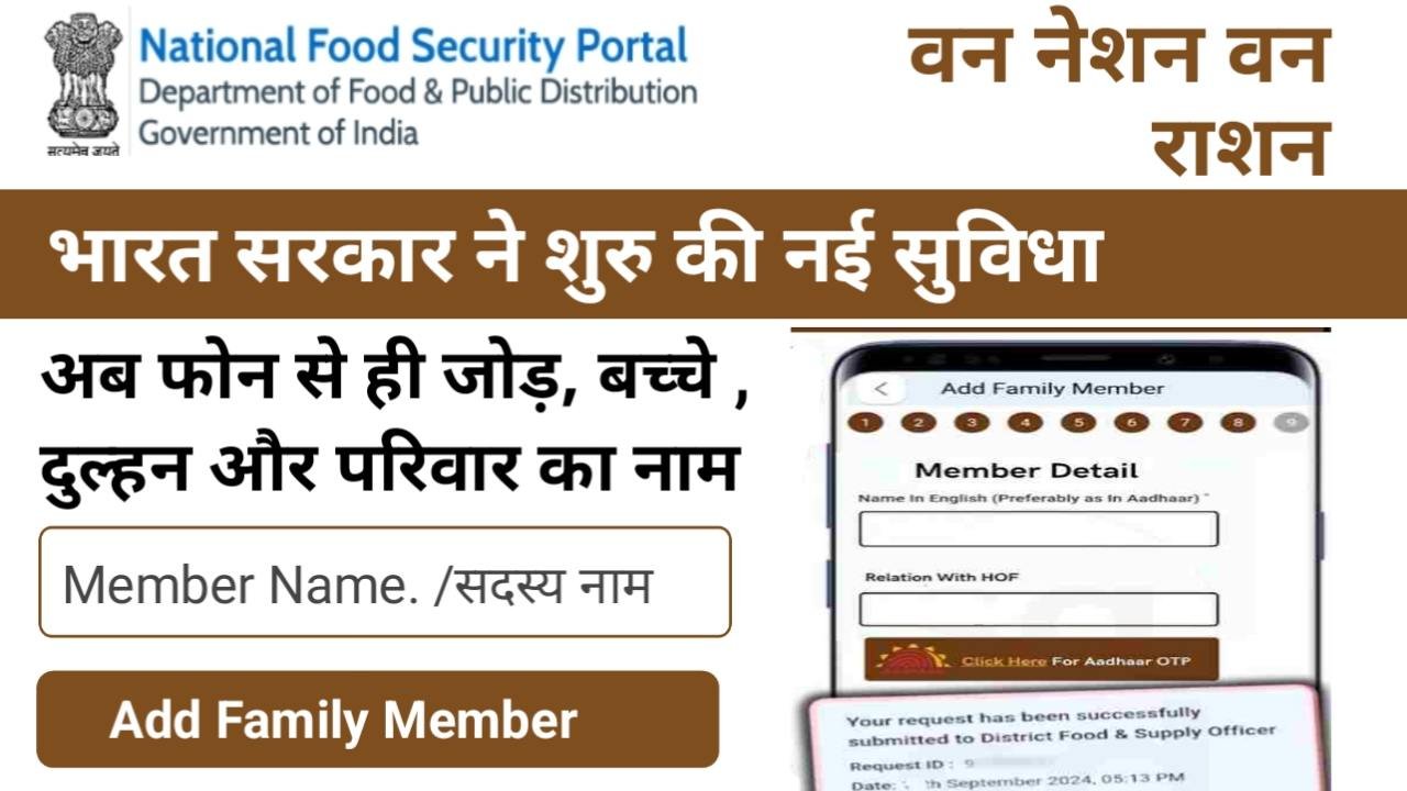 - राशन कार्ड में नया सदस्य जोड़ना।