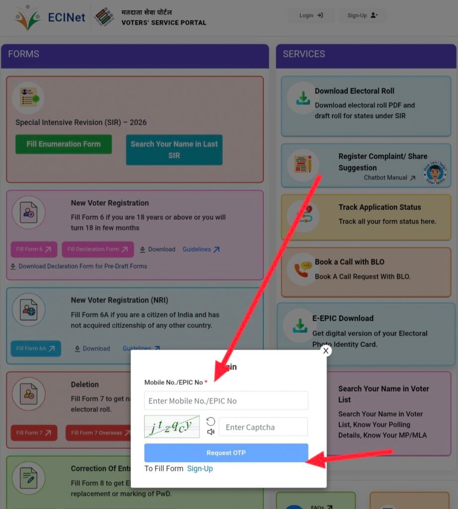 - रजिस्टर्ड मोबाइल नंबर / ईमेल / EPIC नंबर